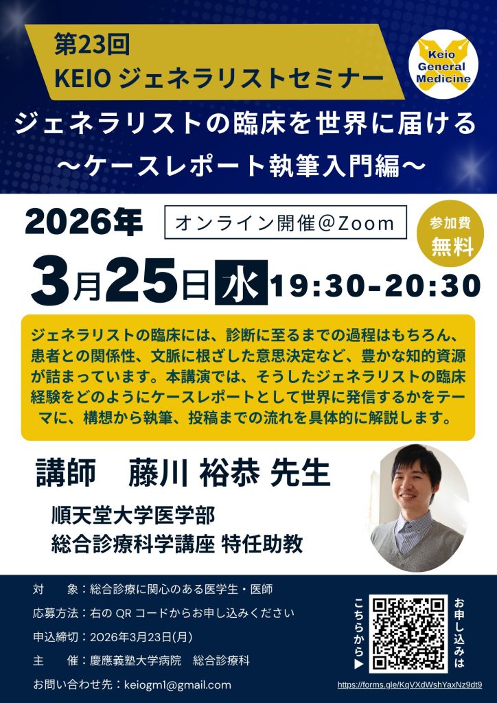 本セミナーは、総合診療や家庭医療に関心のある方にとって、最新の知見を得る絶好の機会です。